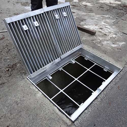 道路の側溝や歩道に使用される金属製のグレーチング・縞版蓋